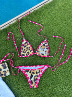 HOT PINK W/ CHEETAH PRINT AND WHITE LINES BIKINI